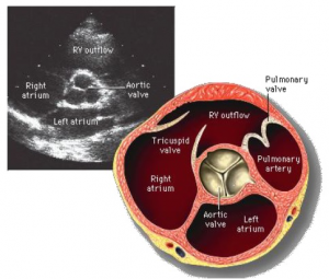 Echo en tekening van een patient met een normale tricuspide aotaklep