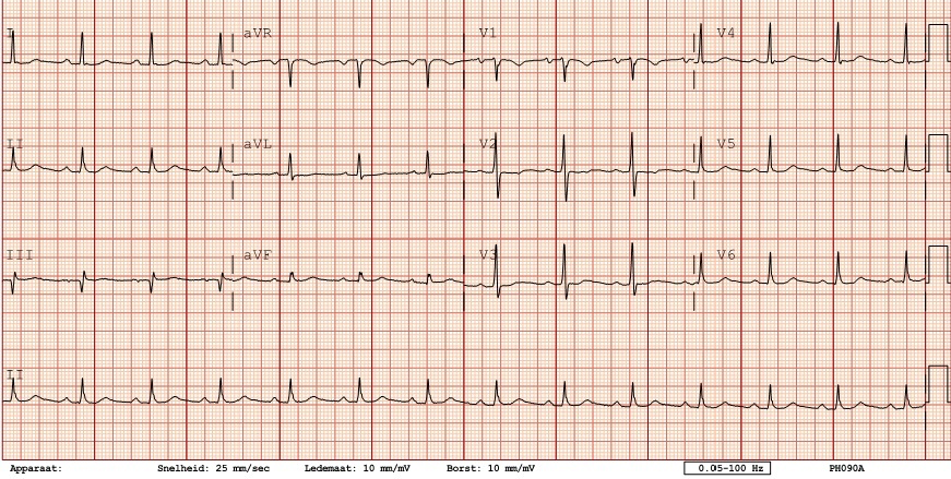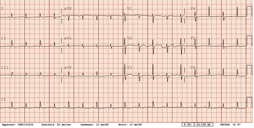 Een 61-jarige man met een vergroot hartfiguur en toenemende kortademigheid. Wat ziet u op het elektrocardiogram?