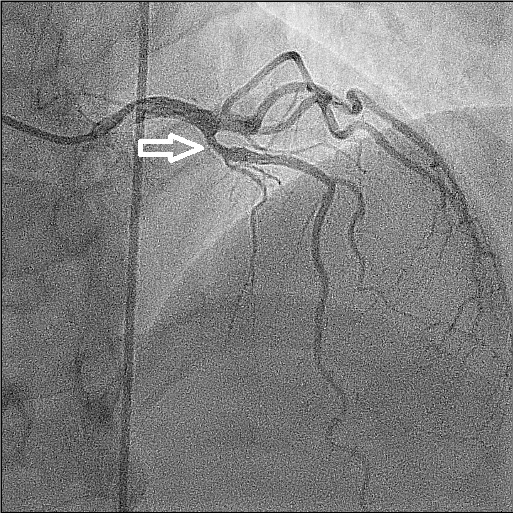 Figuur 2 – Linkerkransslagader (LCA) vóór toediening nitroglycerine intracoronair.