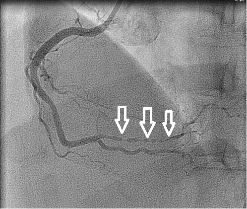 Figuur 3 – Rechterkransslagader (RCA) vóór toediening nitroglycerine intracoronair.