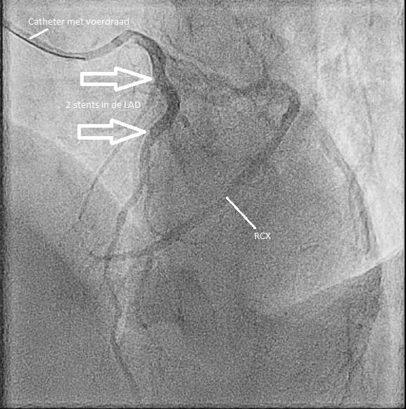 Figuur 4: Met twee pijlen wordt aangegeven waar de stents zich bevinden.