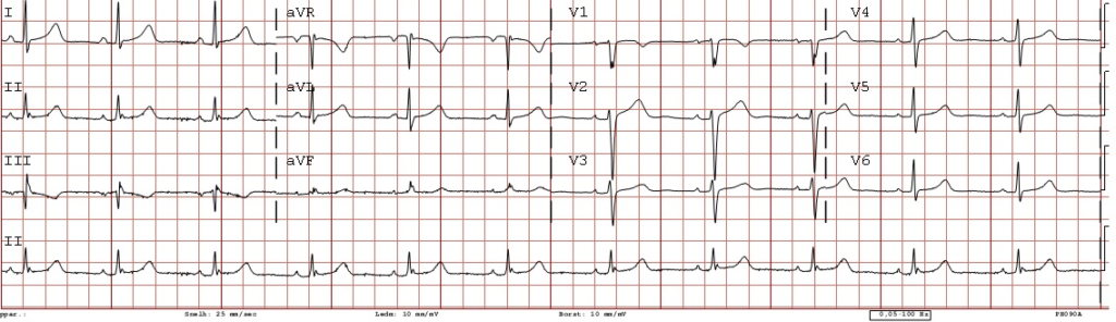 Figuur 3: rust ECG met normale regulair sinusritme en normale repolarisatie